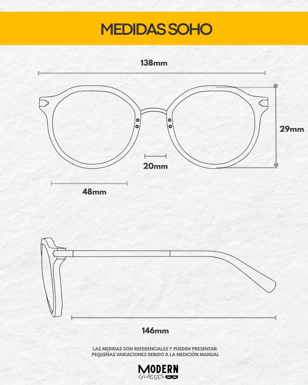 Soho toma la esencia de nuestro modelo modelo London y la lleva a un estilo más atrevido, con cristales en tono café y detalles en las patas que elevan el diseño. Un marco pensado para quienes quieren algo clásico, pero con más personalidad.